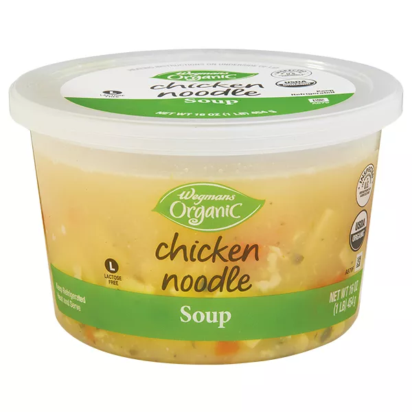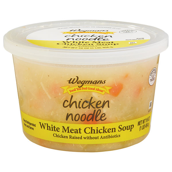 Chicken Broth, Cooked White Chicken Meat (White Chicken Meat, Water, Rice Starch, Salt), Carrots, Enriched Pasta (Semolina Wheat, Egg White, Whole Egg, Niacin, Ferrous Sulfate [Iron], Thiamine Mononitrate, Riboflavin, Folic Acid), Celery, Contains less than 2% of each: Salt, Modified Food Starch, Chicken Fat, Sugar, Onion Powder, Natural Flavor, Yeast Extract, Garlic Powder, Ascorbic Acid, Spice, Beta Carotene (for color).