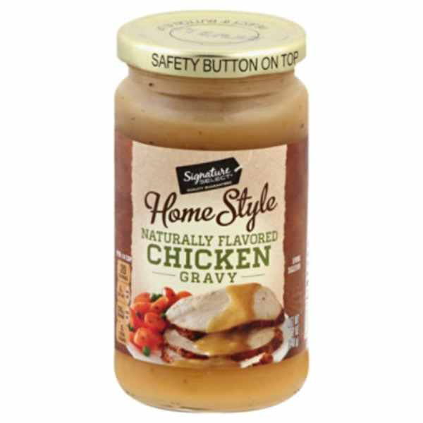 Home-Style Classic Chicken Gravy Heinz Home-Style Classic Chicken Gravy lets you add that classic, scrumptious homemade flavor to your favorite meals. The perfectly-cooked chicken stock is carefully simmered with a blend of flavorful and aromatic spices incorporating authentic tastes and luscious texture. Rich and Savory add a zing to your meals with this classic home-style gravy. The authentic chicken flavor will tantalize your taste buds, making it perfect for adding richness and texture to your sauces, soups, and broths. This package contains one 12 oz jar.