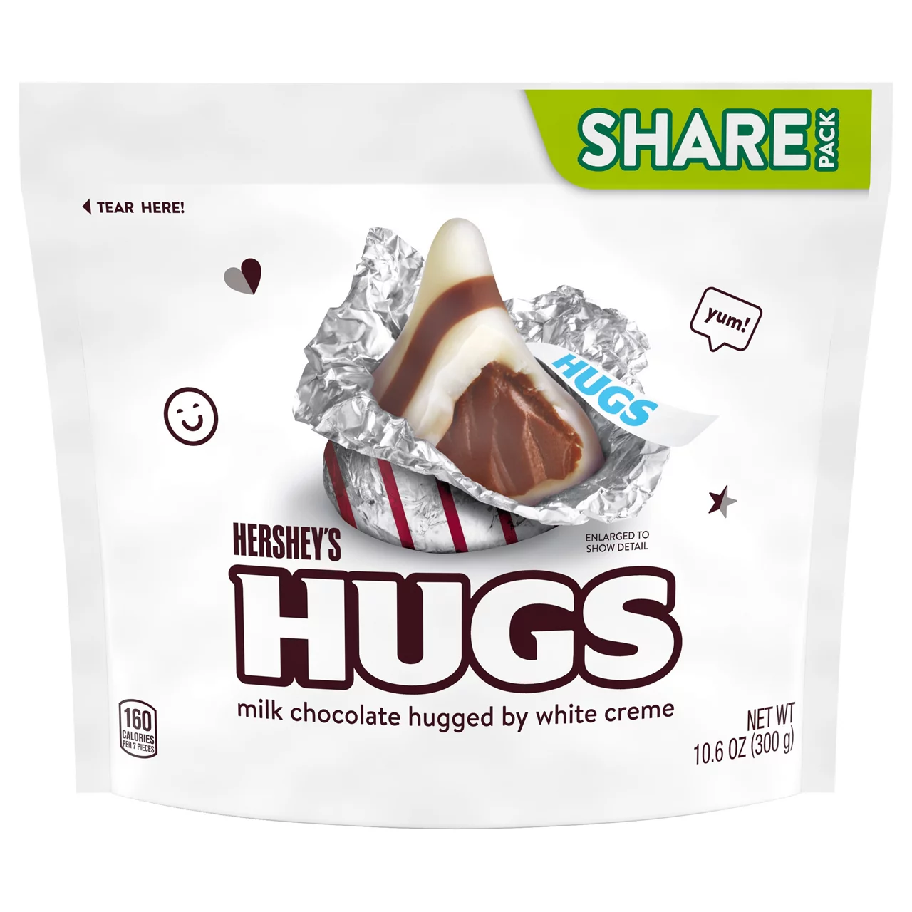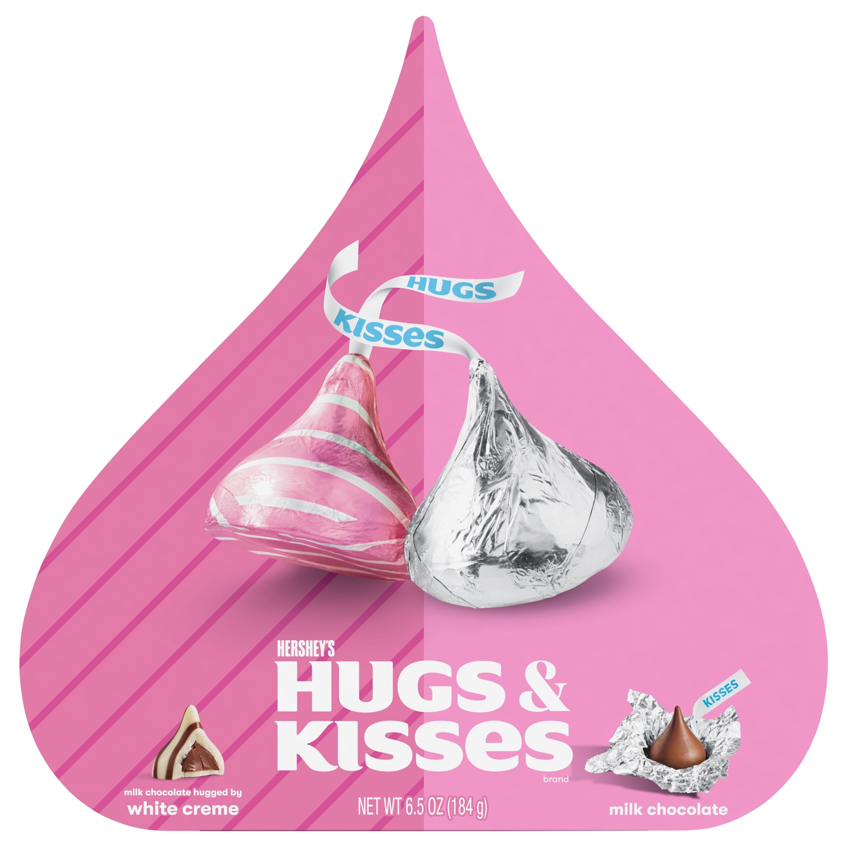 Treat your guests to the delectable combination of HERSHEY'S Milk Chocolate hugged by sweet white crème and classic HERSHEY'S Milk Chocolate. HERSHEY'S HUGS and KISSES Assortment make great Valentine’s Day party favors and table displays, or use them when baking your favorite cookies. Celebrate the day with these delicious delights.
