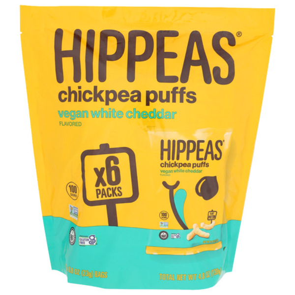 HIPPEAS Snacks are made from small but mighty chickpeas! HIPPEAS Chickpea Puffs are Non-GMO Project Verified, Certified Gluten-Free, Vegan and totally delicious! With 130 calories, 4g of plant-based protein and 3g of fiber per 1 ounce serving, HIPPEAS are the new go-to snack for those who demand great taste and high-quality ingredients. HIPPEAS keep you keepin' on.