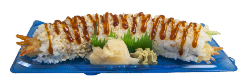 RICE, COOKED SHRIMP, CUCUMBER, SEAWEED, SESAME SEEDS, BLACK SESAME SEEDS, TEMPURA (WHEAT FLOUR, CORN OIL), CHILI OIL, MAYONNAISE (SOYBEAN OIL, EGG, LEMON JUICE FROM CONCENTRATE, FOOD STARCH-MODIFIED, GUAR AND XANTHAN GUMS (FOOD FIBER), MUSTARD FLOUR, ONION POWDER), EEL SAUCE (SOY BEANS, WHEAT, SEA SALT, ALCOHOL, CANE JUICE, MIRIN, SAKE, CORNSTARCH, EEL EXTRACT, CARAMEL), WASABI (HORSERADISH POWDER, MUSTARD POWDER, CORNSTARCH, PEPPER, VITAMIN C, NATURAL VEGETABLE POWDER FOR COLORING), PICKLED GINGER, SALT, SUGAR, BROWN SUGAR, WATER AND VINEGAR. SOY SAUCE PACKET INSIDE.' '
