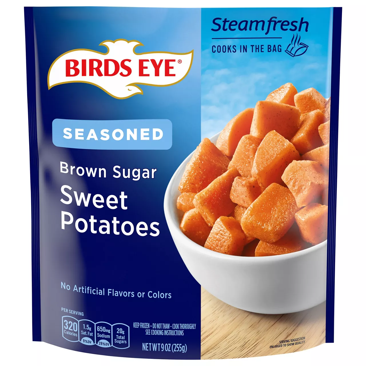 SWEET POTATO, WHOLE MILK, BROWN SUGAR (SUCROSE, INVERT SUGAR, CANE MOLASSES), PECANS (PECANS, CANOLA OIL), BUTTER (SWEET CREAM [MILK], SALT), SUGAR, MARGARINE (LIQUID AND HYDROGENATED SOYBEAN OIL, WATER, SALT, CONTAINS LESS THAN 2% OF VEGETABLE MONO AND DIGLYCERIDES, SOY LECITHIN, CITRIC ACID, NATURAL AND ARTIFICIAL FLAVOR, VITAMIN A PALMITATE ADDED), SALT, POTASSIUM SORBATE (PRESERVATIVE), MAPLE FLAVOR (MALTODEXTRIN, FOOD STARCH MODIFIED, GLUCOSE, NATURAL FLAVOR, CARAMEL COLOR), CINNAMON, NUTMEG.