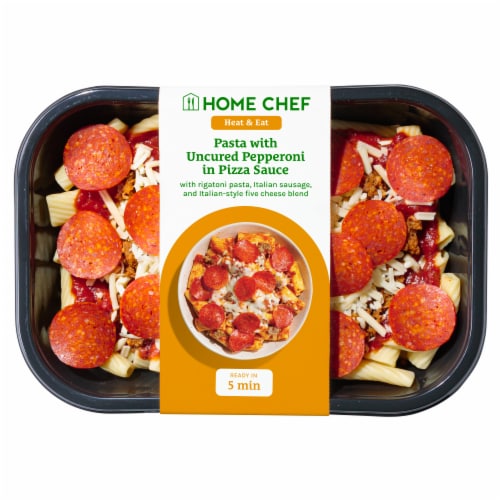 COOKED ENRICHED RIGATONI PASTA (WATER, DURUM WHEAT SEMOLINA, NIACIN, IRON (FERROUS SULFATE), THIAMINE MONONITRATE, RIBOFLAVIN, FOLIC ACID), SEASONED TOMATO SAUCE (WATER, TOMATO PUREE (TOMATO PASTE, WATER), CONTAINS 2% OR LESS OF: GARLIC, SUGAR, SEASONING BLEND [SALT, SPICES, SOYBEAN OIL, NATURAL FLAVORS], SALT, CITRIC ACID), ITALIAN-STYLE CHEESE BLEND (MOZZARELLA, PARMESAN, ASIAGO, MONTAMORE, AND FONTINA CHEESES [PASTEURIZED MILK, CHEESE CULTURES, SALT, ENZYMES], POWDERED CELLULOSE (TO PREVENT CAKING)), SWEET ITALIAN SAUSAGE CRUMBLES (PORK, WATER, WHITE VINEGAR, SUGAR, CONTAINS 2% OR LESS OF SALT, FENNEL, SEASONING [SALT, HYDROLYZED CORN PROTEIN, SPICES (INCLUDING PAPRIKA), GARLIC, ONION, SUGAR, CORN STARCH, NATURAL SMOKE FLAVOR, CITRIC ACID, SPICE EXTRACTIVES (INCLUDING PAPRIKA), NATURAL LEMON FLAVOR, MINCED GARLIC, PAPRIKA, BLACK PEPPER]), UNCURED PEPPERONI, NO NITRITES OR NITRATES ADDED EXCEPT FOR THOSE NATURALLY OCCURRING IN SEA SALT AND CELERY POWDER (PORK, SEA SALT, SPICES, WATER, DEXTROSE, PAPRIKA, NATURAL FLAVORING, CELERY JUICE SOLIDS, GARLIC POWDER, OLEORESIN PAPRIKA, LACTIC ACID STARTER CULTURE).