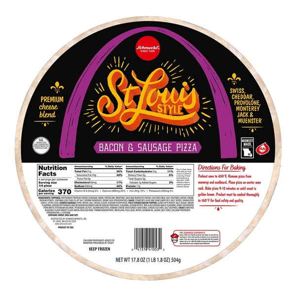 Crust (Wheat Flour, Water, Corn Oil, Yeast, Salt), Whole Milk Mozzarella (a), (Pasteurized Milk, Cheese Cultures, Salt, Enzymes), Sauce (Tomatoes, Salt, Water, Oregano, Black Pepper), Sausage (Pork, Salt, Spices, Flavorings). (a) Cheese from Milk of Cows Not Treated with rBST, No Significant Difference Has Been Shown Between Milk Derived from rBST Treated and Non-rBST Treated Cows.