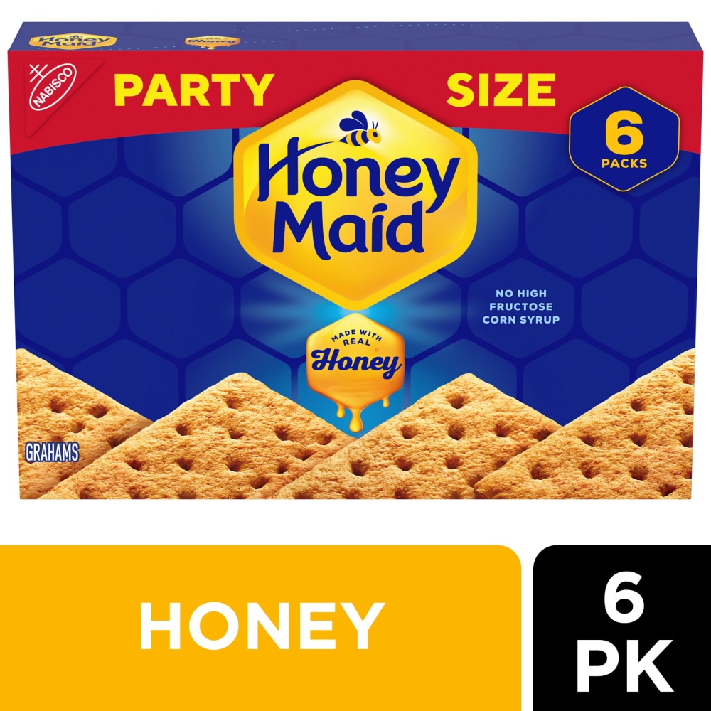 One 19.2 oz family size box of Honey Maid Honey Graham CrackersSweet snacks made with real honey for delicious flavor and contain no high-fructose corn syrup, saturated fat, or cholesterolSquare shaped graham snacks have a crunch in each biteEnjoy these whole grain crackers as an afternoon snack or stack a honey cracker with marshmallows and chocolate for yummy s'moresEach 31 g serving contains 8 g of whole grain and no high fructose corn syrup