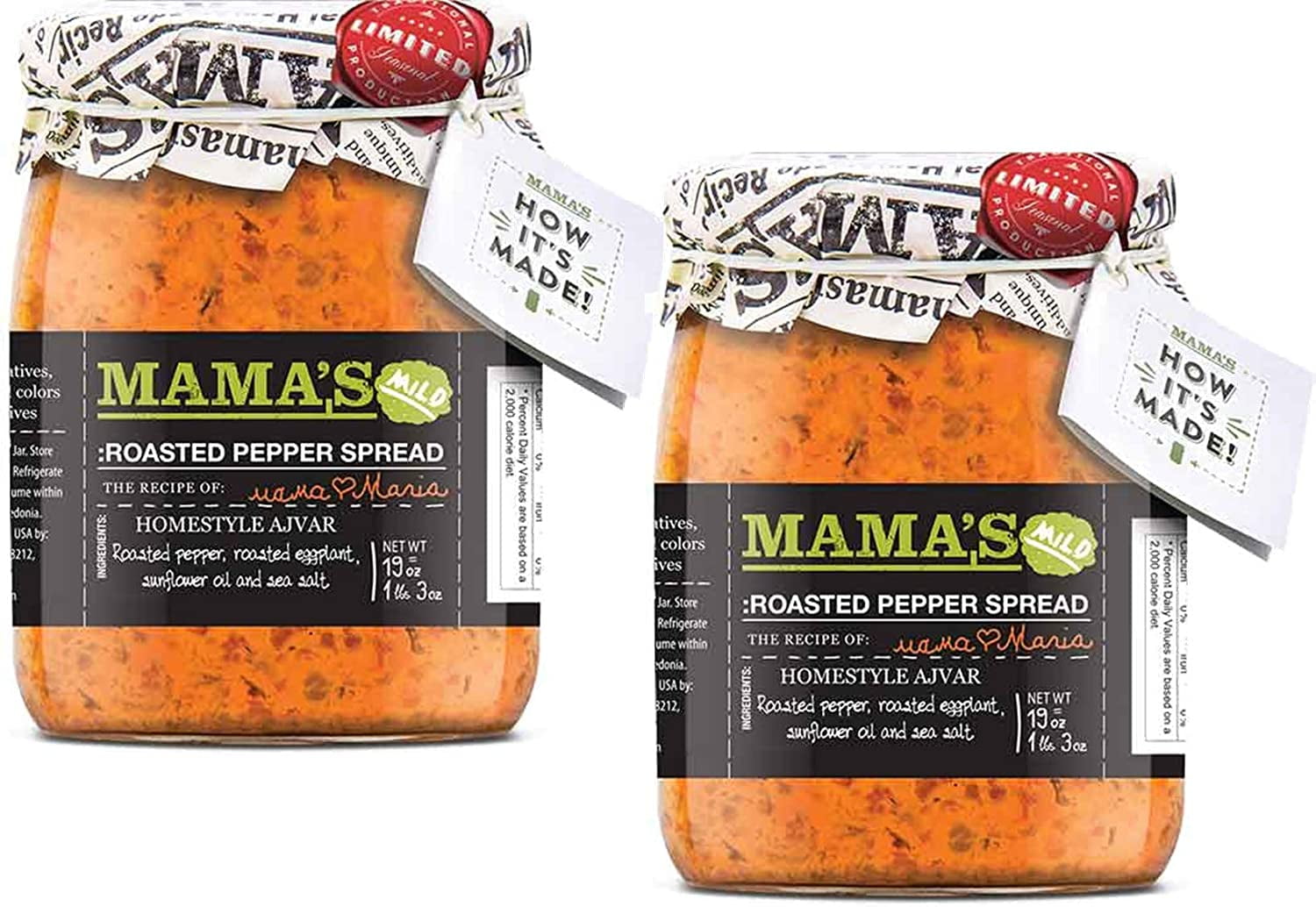 Mama's Home Style Mild Roasted Pepper Red Ajvar Spread, 2-Pack