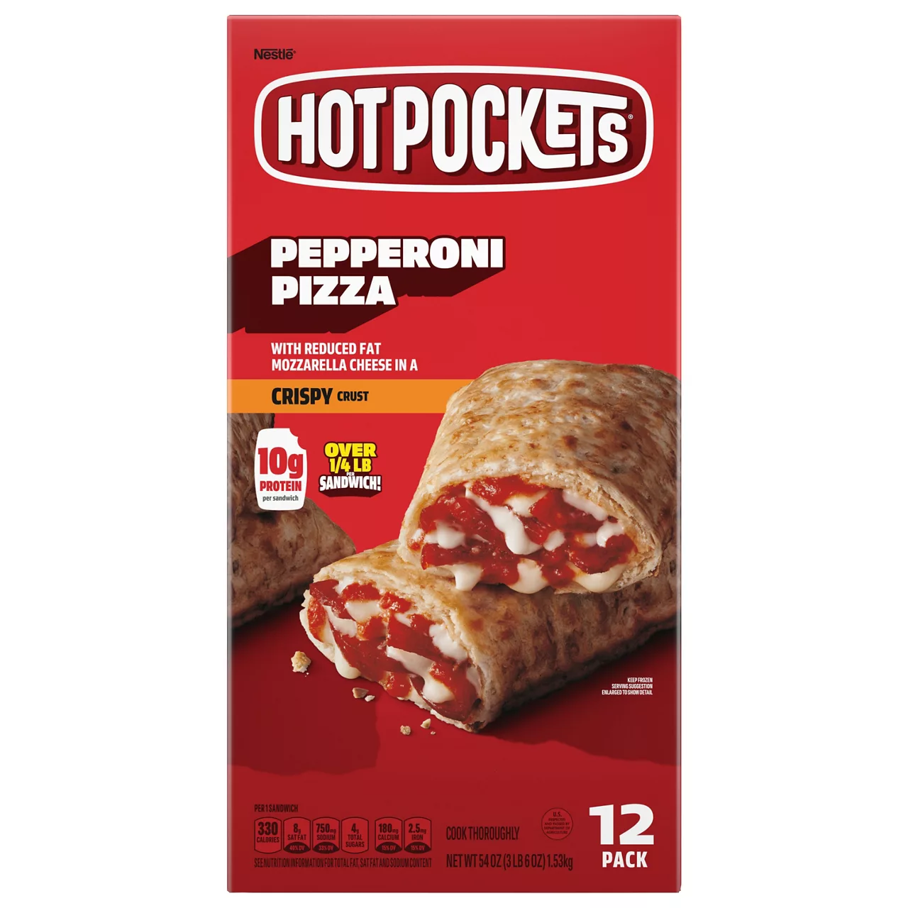 Hot Pockets Frozen Snacks, Pepperoni Pizza Crispy Crust, 12 Sandwiches