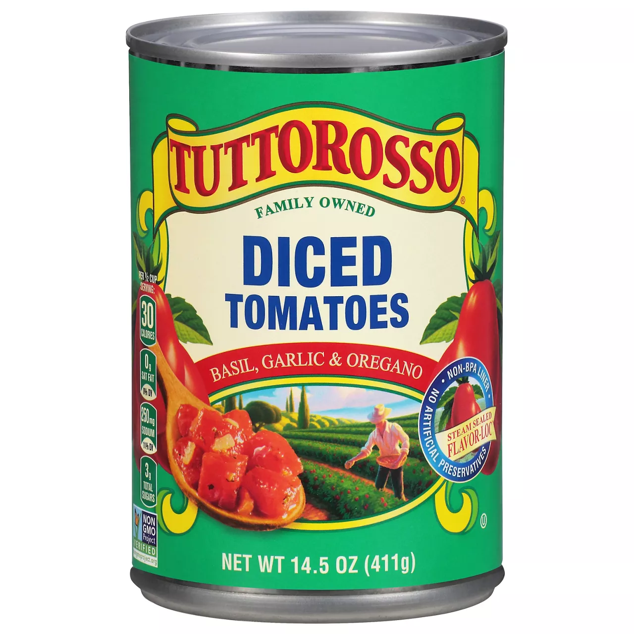 Add a taste of Italy to your favorite meals using Hunt's Diced Tomatoes with Basil, Garlic & Oregano. Savor every bite of Hunt's robust herb blend, perfect for pasta sauces, pizzas, lasagna, and more. Hunt's vine-ripened tomatoes are peeled, diced, and ready to go. No compromise, Hunt's Diced Tomatoes with Basil, Garlic & Oregano are 100% natural, with no artificial preservatives. Hunt's Flashsteam® tomatoes are peeled with simple hot water. Contains 14.5 oz of diced tomatoes; roughly 3.5 servings...