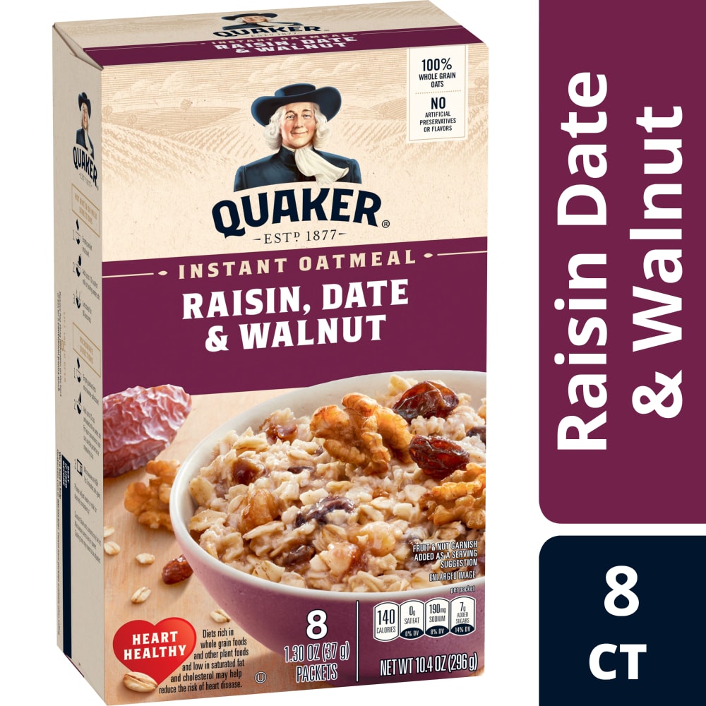 WHOLE GRAIN ROLLED OATS (WITH OAT BRAN), SUGAR, RAISINS, CHOPPED DATES, WALNUTS WITH BHT ADDED TO PROTECT FLAVOR, SALT, CALCIUM CARBONATE (A SOURCE OF CALCIUM), GUAR GUM, CINNAMON, VITAMIN A PALMITATE, NIACINAMIDE++, REDUCED IRON, PYRIDOXINE HYDROCHLORIDE++, RIBOFLAVIN++, THIAMIN MONONITRATE++, FOLIC ACID++.