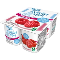 CULTURED PASTEURIZED GRADE A NONFAT MILK, RASPBERRY PUREE, WATER, FOOD STARCH-MODIFIED, FRUCTOSE, NATURAL FLAVOR, CITRIC ACID, FRUIT AND VEGETABLE JUICE (COLOR), CALCIUM PHOSPHATE, CARRAGEENAN, PECTIN, POTASSIUM SORBATE (TO MAINTAIN FRESHNESS), SUCRALOSE, SUGAR, VITAMIN A PALMITATE, VITAMIN D3.