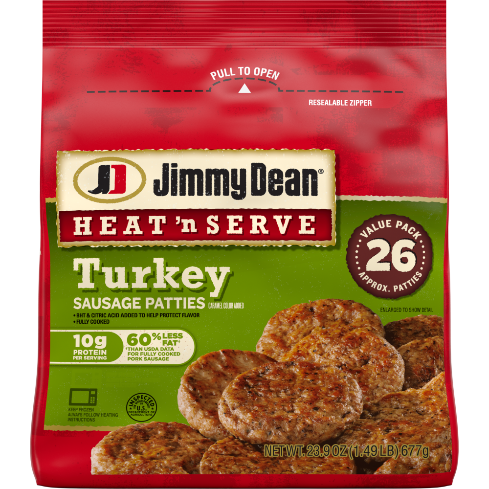 Simple and Guilt Free!Ready in as little as 45 seconds and with 70% less fat*, Jimmy Dean® Fully Cooked Turkey Sausage gives you the warm, savory breakfast you love without the guilt! It's the smarter way to start your day!