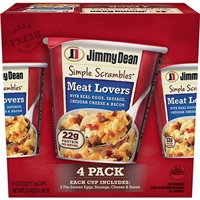 Wake up and enjoy a fresh made breakfast with Jimmy Dean® Sausage Simple Scrambles. Made with two real eggs, premium pork sausage, and cheddar cheese, our Simple Scrambles are packed with 22 grams of protein per serving for a hearty breakfast that?s ready in seconds. Simply combine, heat, and eat for a fresh made breakfast at home or on-the-go. Includes one 5.35 oz. microwave-safe cup. Can breakfast make the world a brighter place? At Jimmy Dean®, we believe that when you have a good breakfast, you...