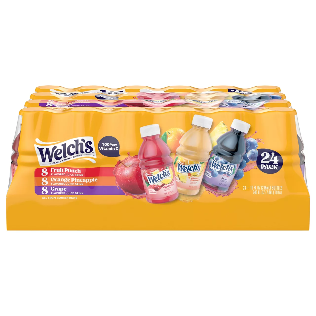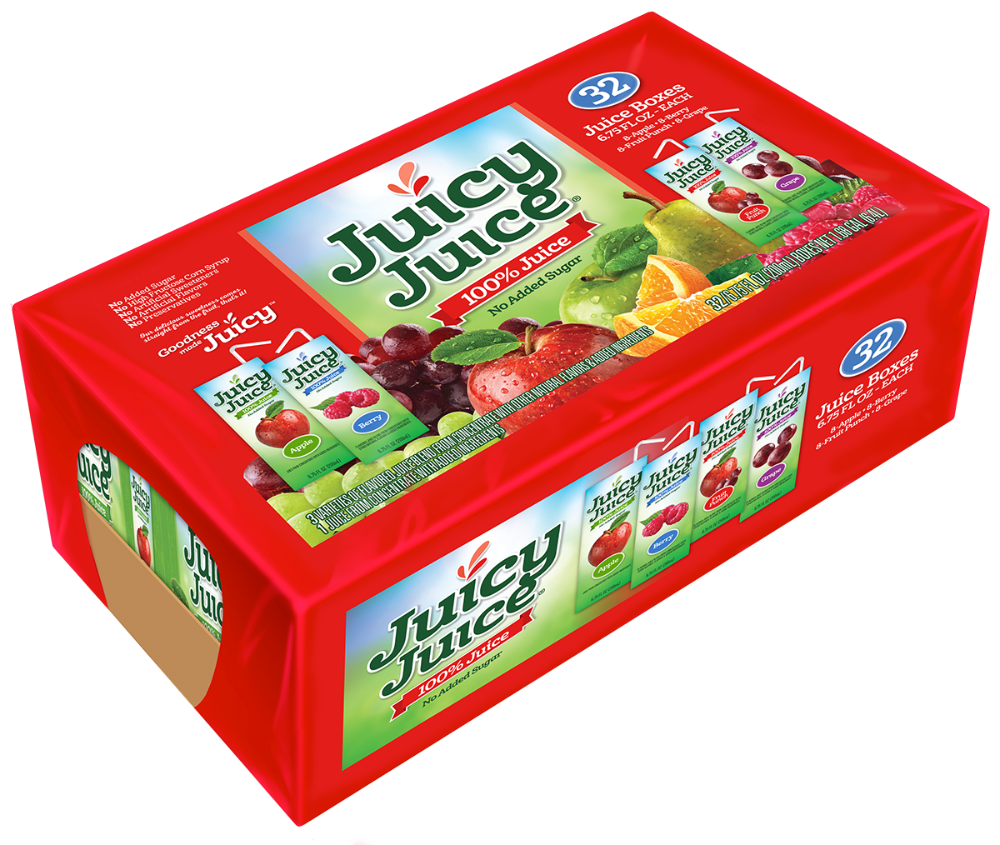 Apple: Apple Juice from Concentrate (Water, Juice Concentrate), Ascorbic Acid (Vitamin C), Citric Acid, Grape: Apple Juice from Concentrate (Water, Juice Concentrate), Grape Juice from Concentrate (Water, Juice Concentrate), Ascorbic Acid (Vitamin C), Natural Flavors, Citric Acid, Berry: Apple Juice from Concentrate (Water, Juice Concentrate), Pear Juice from Concentrate (Water, Juice Concentrate), Grape Juice from Concentrate (Water, Juice Concentrate), Raspberry Juice from Concentrate (Water, Juice Concentrate), Ascorbic Acid (Vitamin C), Citric Acid, Natural Flavors, Fruit Punch: Apple Juice from Concentrate (Water, Juice Concentrate), Pear Juice from Concentrate (Water, Juice Concentrate), Tangerine Juice from Concentrate (Water, Juice Concentrate), Grape Juice from Concentrate (Water, Juice Concentrate), Ascorbic Acid (Vitamin C), Citric Acid, Natural Flavors.