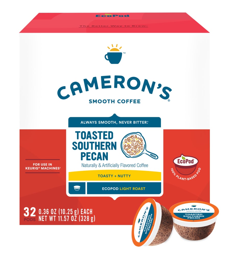Cameron's Coffee EcoPods, Flavored, Toasted Southern Pecan Light Roast Ground Coffee