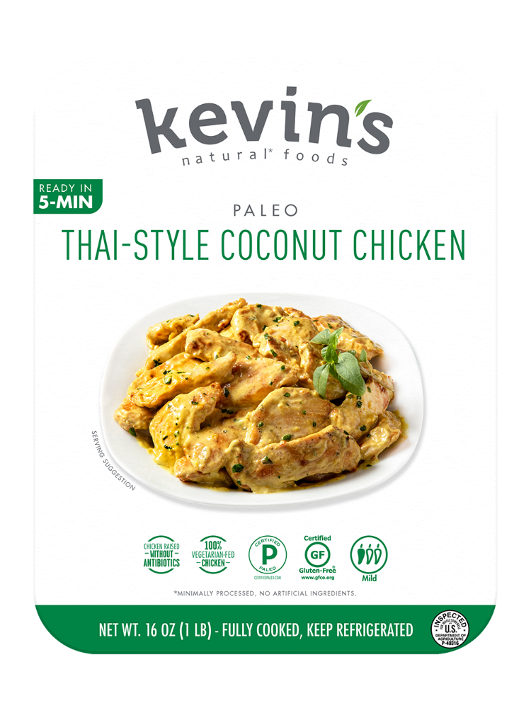 Chicken in Chicken Broth Cooked Out as a Result of the Sous-Vide Process (Boneless Skinless Chicken Breast, Water, Vinegar, Yeast Extract, Sea Salt, Cultured Onion Juice, Black Pepper, Citrus Extract), Thai Coconut Sauce (Coconut Milk [Coconut Cream, Water], Water, Coconut Sugar, Lime Juice Concentrate, Spices, Tapioca Starch Yeast Extract, Basil, Sea Salt, Lemongrass Puree [Lemongrass, Water], Dehydrated Garlic, Dehydrated Onion, Turmeric, Xanthan Gum, Dehydrated Ginger, Black Pepper, Monk Fruit Extract)