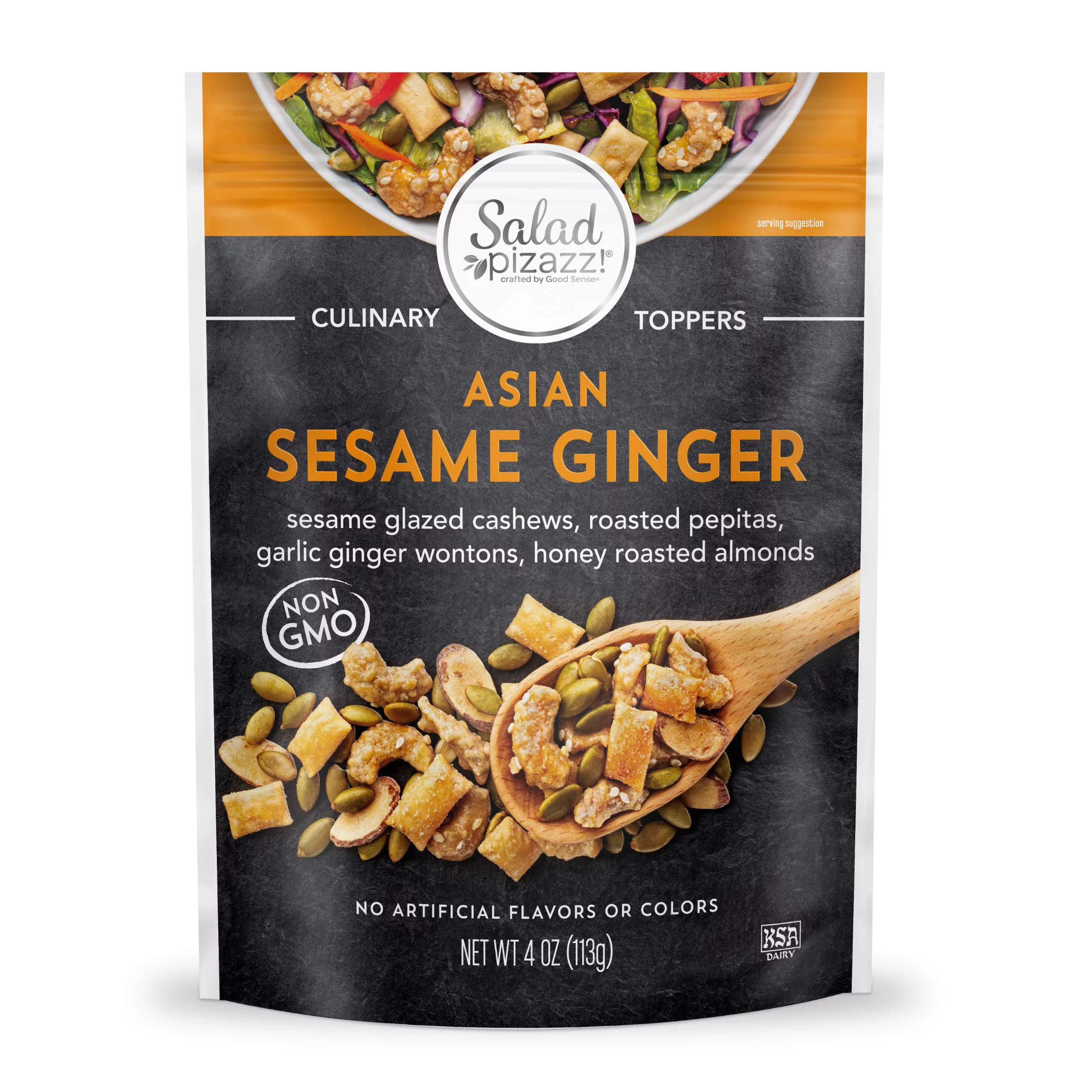Kewpie Deep Roasted Sesame Dressing, 8 oz: Creamy texture 8 oz of dressing per bottle Non-GMO Project verified This creamy sesame dressing is kosher No trans-fat or cholesterol Contains deep-roasted sesame and brown sugar Good for salads, cold pasta, veggie dip, slaw mix, marinade and more The ingredients include: expeller pressed canola oil, water, soy sauce (water, soybeans, wheat, salt), brown sugar, sesame seeds, distilled vinegar, salt, yeast extract, natural flavors, egg yolk and xanthan gum