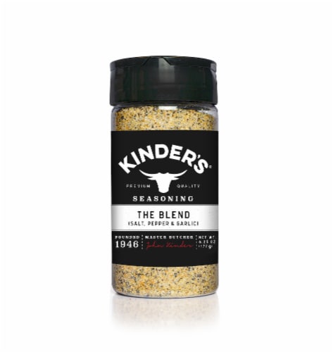 About Kinderâs The Blend Seasoning Over nearly 70 years, John Kinder perfected his own master blend of seasonings as a âgo-toâ for every day cooking. This recipe, Johnâs special recipe of salt, cracked pepper, and crunchy chunks of garlic is now available as The Blend. While it might sound simple, we think youâll find it works on all kinds of chicken, beef, fish, vegetables...just about anything. And once youâve tried it, we think youâll wonder how you lived without it. Kinder's: Handcrafted...