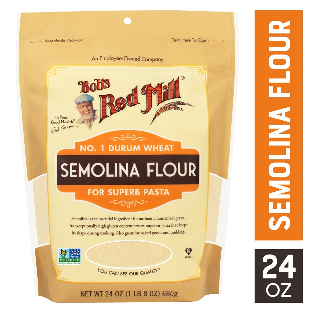 King Arthur Semolina Flour is the soft yellow flour that has it all: Good looks, flavor, and versatility in home baking applications from breads to pizzas and pasta. Our Semolina flour is a coarse grind of high-protein durum wheat grown in the USA; it gives a nutty, sweet flavor and striking pale yellow color to homemade breads, pizza or pasta. Substitute our Semolina Flour for some (or all) of the all-purpose flour in your recipe; comes in a 3lb resealable bag for easy use and re-use. King Arthur Baking Company is a 100% Employee-Owned Company and a founding B Corporation. We are King Arthur Baking Company. Our name and logo reflect who we've always been and always will be: bakers who are committed to spreading the simple joy of baking. Produced on equipment that also processes eggs, milk, soy, almonds, hazelnuts, pecans, walnuts, and coconut.