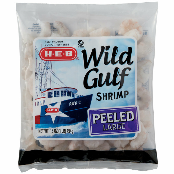 H-E-B Wild Caught Frozen Peeled Large Texas Gulf Raw Shrimp, 50 - 70 ct/lb