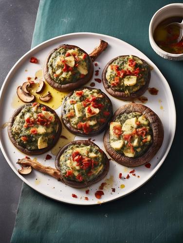 Creamy Spinach and Red Pepper Portobello Mushrooms