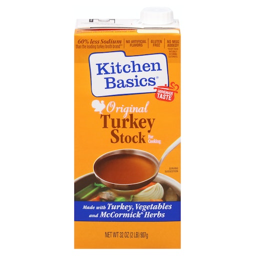 Kitchen basics® turkey cooking stock. All natural. Original. Slowly simmered from turkey, vegetables & herbs. Close to homemade. Less sodium*. No glutens. No msg.