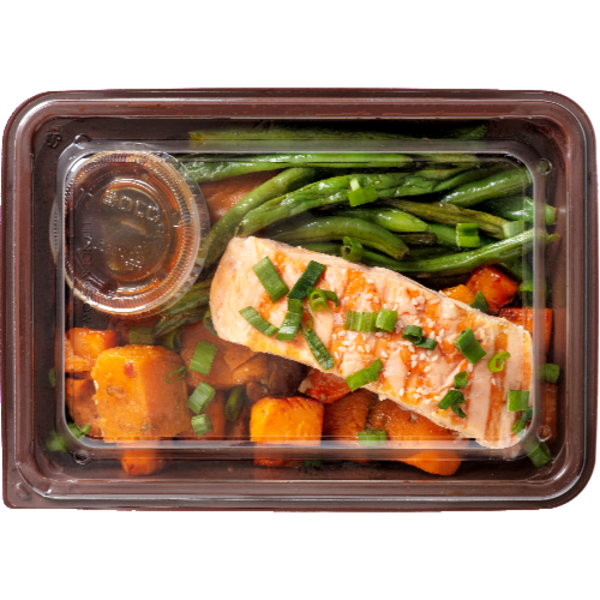 MASHED POTATOES (COOKED POTATOES, MILK, SOUR CREAM [MILK, CREAM, MODIFIED CORN STARCH, GUAR GUM, CARRAGEENAN, LOCUST BEAN GUM, SODIUM CITRATE, CULTURES], BUTTER, SALT, SPICE), GRILLED FULLY COOKED SALMON (PINK AND/OR KETA SALMON, WATER, CONTAINS 2% OR LESS OF: SEA SALT, SUGAR, SODIUM PHOSPHATE, DEHYDRATED GARLIC AND ONION, SPICES, PAPRIKA, XANTHAN GUM, NATURAL FLAVOR, SPICE EXTRACTIVES), GREEN BEANS, EVERYTHING SEASONED BUTTER (BUTTER [CREAM, SALT], SESAME SEEDS, SEA SALT, ONION, POPPY SEEDS, GARLIC, TAMARI SOY SAUCE [WATER, SOYBEANS, SALT, ALCOHOL {TO PRESERVE FRESHNESS}], HONEY, CORN STARCH)