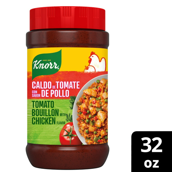 Knorr Shelf Stable Paste Tomato and Chicken Bouillon, 3.5 oz Jar Knorr Granulated Chicken with Tomato Flavor Bouillon blends tomato and chicken flavors with onions, parsley, and other spices From rich soups to sauces and stews, the classic flavor of tomato and chicken flavor bouillon is the ultimate savory base for your family's favorites This soup base is flavored with tomato, chicken, and spices for an authentic, home-cooked taste For more recipes, plus inspiration and ideas using this tomato bouillon and other pantry essentials Enhance the flavor of soups, stews, sauces, rice, vegetables, pasta, and any chicken dishes