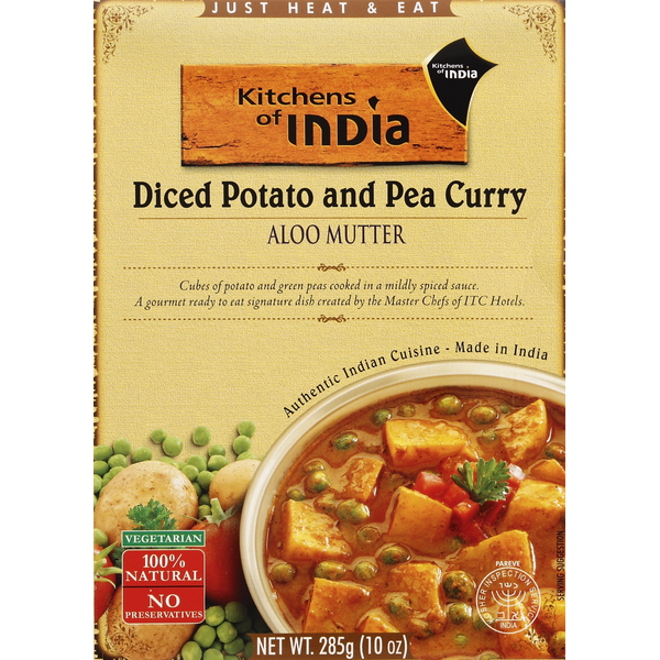 WATER, GREEN PEAS, POTATO, ONION PASTE (ONION, OLIVE OIL),TOMATO PASTE, BUTTER, OLIVE OIL, MILK, SALT, CORIANDER POWDER, GREEN CHILLI PASTE (GREEN CHILLI, WATER), GINGER, CORIANDER LEAVES, TURMERIC POWDER, RED CHILLI POWDER, CUMIN POWDER, GARLIC PASTE, FENUGREEK POWDER, CARDAMOM POWDER, CINNAMON POWDER, CLOVE POWDER, BLACK PEPPER.