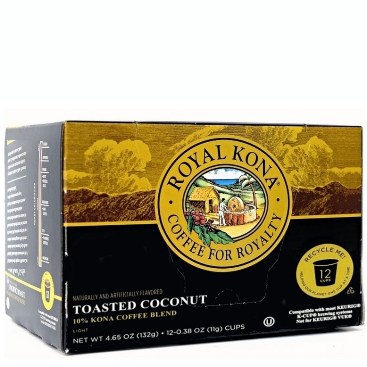 Royal Kona Coffee Toasted Coconut, 10% Kona Blend, Single-Serve Coffee Pods - 12 Count Box
