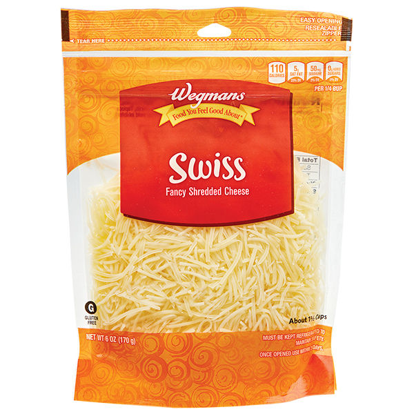 INGREDIENTS: SWISS CHEESE (PASTEURIZED MILK, CHEESE CULTURE, SALT, ENZYMES), MODIFIED CORNSTARCH ADDED TO PREVENT CAKING, NATAMYCIN (A NATURAL MOLD INHIBITOR)