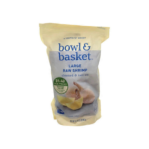 Bowl & Basket cleaned & tail-on LARGE RAW SHRIMP