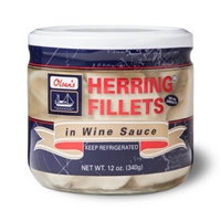 Herring, Corn Syrup or Sugar, Salt Brine, Onion, Vinegar, Spices, Wine (Contains Sulfites), Sodium Benzoate (Added as Preservative).