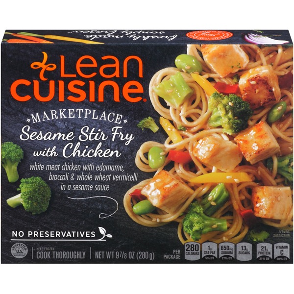 VEGETABLE AND NOODLE MIX: COOKED PASTA (WATER, SEMOLINA WHEAT FLOUR, WHEAT GLUTEN), BROCCOLI, YELLOW CARROTS, RED PEPPERS, EDAMAME SOYBEANS. SAUCE AND CHICKEN: COOKED WHITE MEAT CHICKEN, WATER, BROWN SUGAR, SOY SAUCE (WATER, WHEAT, SOYBEANS, SALT), APPLE CIDER VINEGAR, CORN STARCH, CHILI GARLIC SAUCE (SALTED CHILI PEPPERS [CHILI PEPPERS, SALT], SUGAR, WATER, RICE VINEGAR, DRIED GARLIC, SALT, CORN STARCH), SOYBEAN OIL, SUGAR, SALT, MOLASSES, TOASTED SESAME SEEDS, OAT FIBER, RICE STARCH, TAPIOCA STARCH, POTASSIUM CHLORIDE, CHICKEN STOCK, NATURAL FLAVOR, SESAME OIL, GARLIC, SPICE.