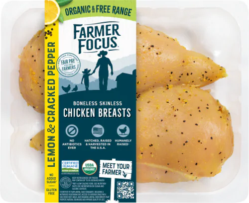 BONELESS SKINLESS CHICKEN BREAST, CHICKEN BROTH, CULTURED CORN SUGAR, VINEGAR, SALT, NATURAL FLAVOR. COATED WITH SALT, SUGAR, CORN SYRUP SOLIDS, DEHYDRATED GREEN BELL PEPPER, MODIFIED CORN STARCH, SPICES, GARLIC POWDER, CONCENTRATED LEMON JUICE, DEHYDRATED LEMON PEEL, ONION POWDER, CITRIC ACID, NATURAL FLAVORS, EXTRACTIVES OF TURMERIC AND PAPRIKA.