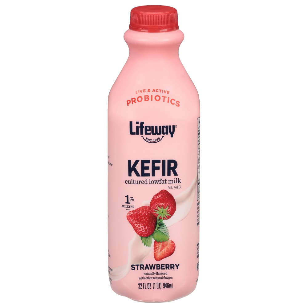 The Lifeway Lowfat Strawberry Kefir is a tart and tangy cultured probiotic dairy drink. Lifeway probiotic beverages are packed with protein, calcium and 12 live and active probiotic cultures. Lifeway Kefir milk is up to 99% lactose-free, gluten-free and made with all-natural, non-GMO ingredients. With more benefits than drinkable probiotic yogurt, Lifeway kefir makes a healthy snack or a great way to start to your morning. Kefir has been enjoyed for over 2000 years, and the probiotic cultures may...