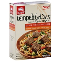 Organic tempeh: cultured organic soybeans, organic brown rice, water, lactic acid (from plant sources). Marinade: water, soybean oil, organic garlic, natural lemon flavor, soy sauce (water, soybeans, wheat, salt), onion powder, citric acid, corn syrup.contains soy, wheat.