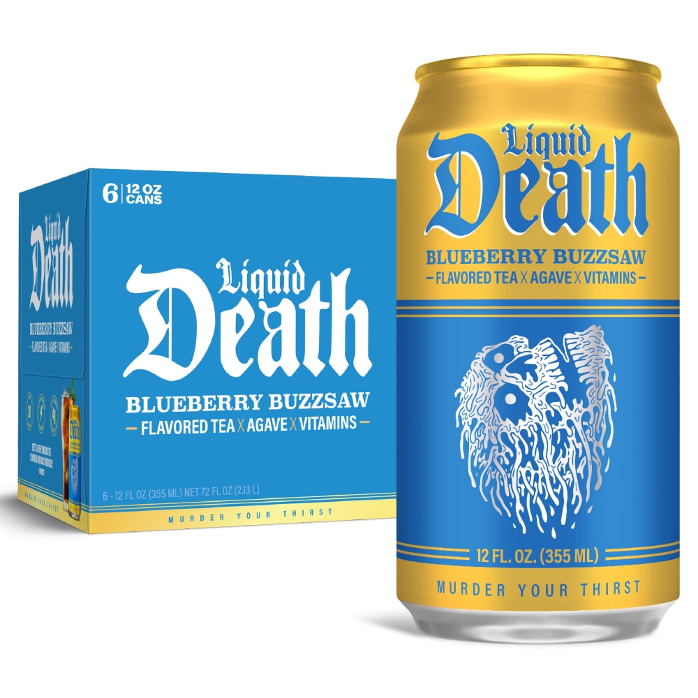 These psychotic cans of raspberry iced tea are dead set on using natural agave and B-vitamins to savagely murder your thirst and turn its insides into balloon animals to book gigs at childrenâs birthday parties. But they wonât stop there. Theyâre also bringing #deathtoplastic by replacing single-use plastic bottles with infinitely recyclable aluminum cans. A portion of profits from every can of Liquid Death iced tea sold goes to charities helping to kill plastic pollution.