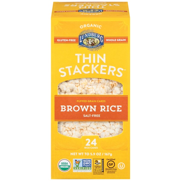 Lundberg Family Farms Thin Stackers Organic Brown Rice Salt Free Puffed Grain Cakes
