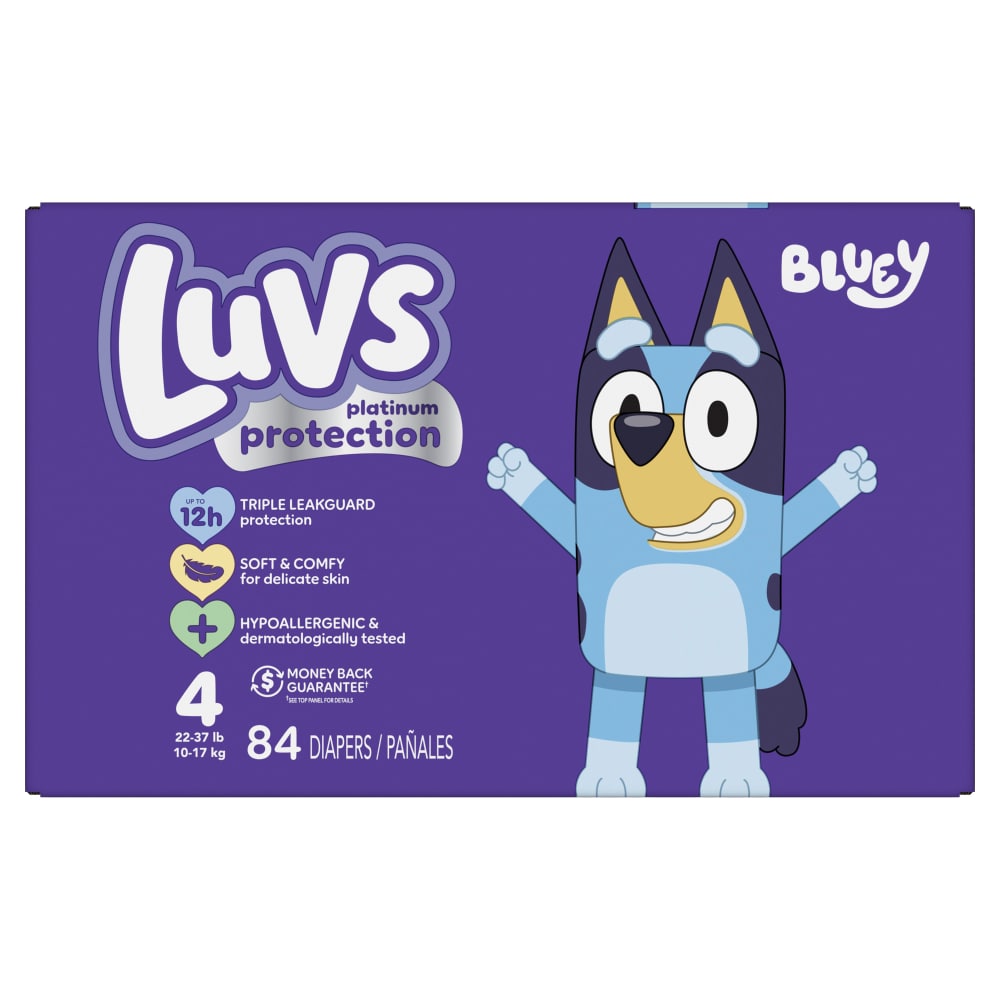 Leaks? Not on our watch. Now Luvs has up to 12 hours of leak protection, day and night Luvs Triple Leakguards absorb quickly to help stop leaks before they happen We're on the case! Secure cuffs and stretchy sides keep pesky leaks on lockdown 100% hypoallergenic. No parabens. No latex.* No worries. (*Natural rubber) Wetness indicator, so you know when they go New look featuring Paw Patrol! Product and packaging may vary. Ships in 100% recyclable box Luvs money-back guarantee always has your back