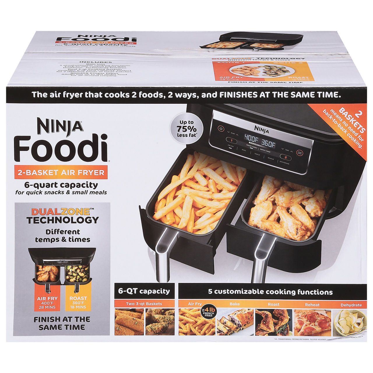 Ninja Foodi 6qt 5-in-1 2-Basket Air Fryer with DualZone Technology - DZ090: Stainless Steel, Digital Control, 1760W
