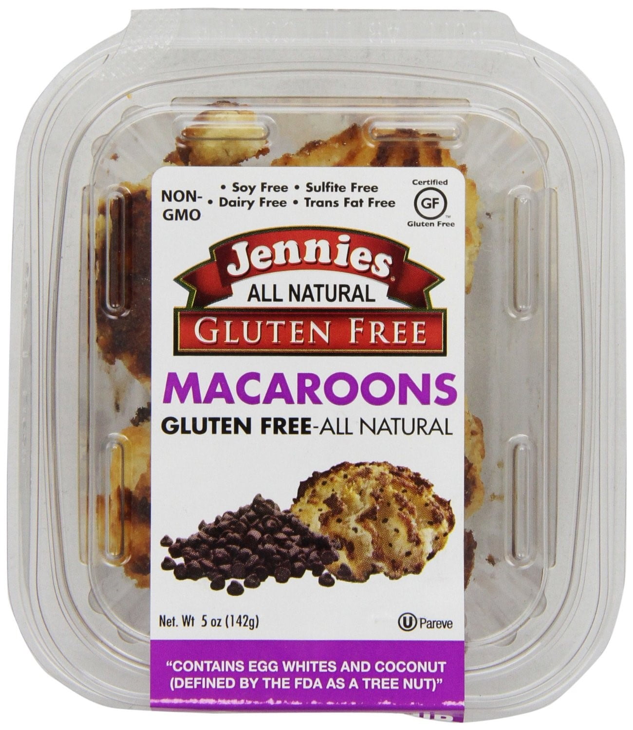 COCONUT (UNSULFURED), SUGAR, INVERT SUGAR, TAPIOCA GLUCOSE EGG WHITES, HAZELNUTS, CHOCOLATE CHIPS (SUGAR. CHOCOLATE LIQUOR, COCOA BUTTER), POTATO STARCH, PRALINE PASTE (HAZELNUTS, SUGAR), SALT, POTASSIUM SORBATE (ADDED AS A PRESERVATIVE).