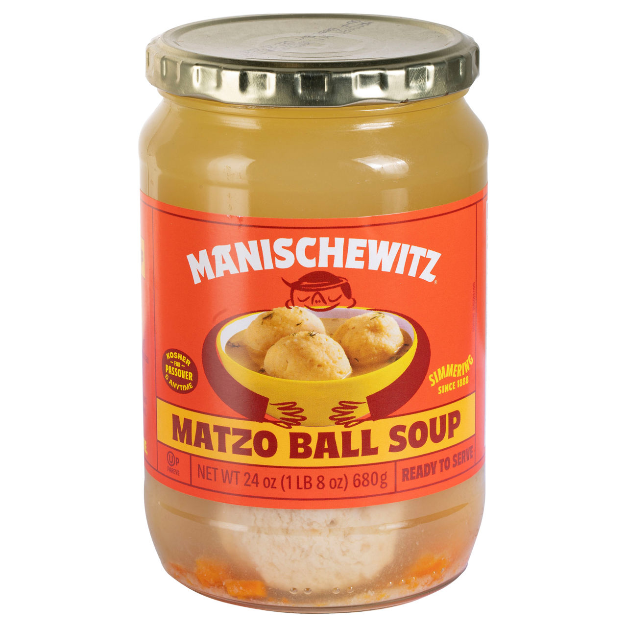 CHICKEN BROTH [CHICKEN STOCK, SALT, FLAVORINGS, CHICKEN FAT, YEAST EXTRACT, EVAPORATED CANE SYRUP SUGAR, VEGETABLE JUICE CONCENTRATE (CARROT, CELERY, ONION)], MATZO BALLS [CONSISTING OF MATZO MEAL (WHEAT FLOUR AND WATER), EGGS, CANOLA OIL, SALT, ONION, FLAVORINGS], CHICKEN MEAT, CARROTS, AND CELERY.