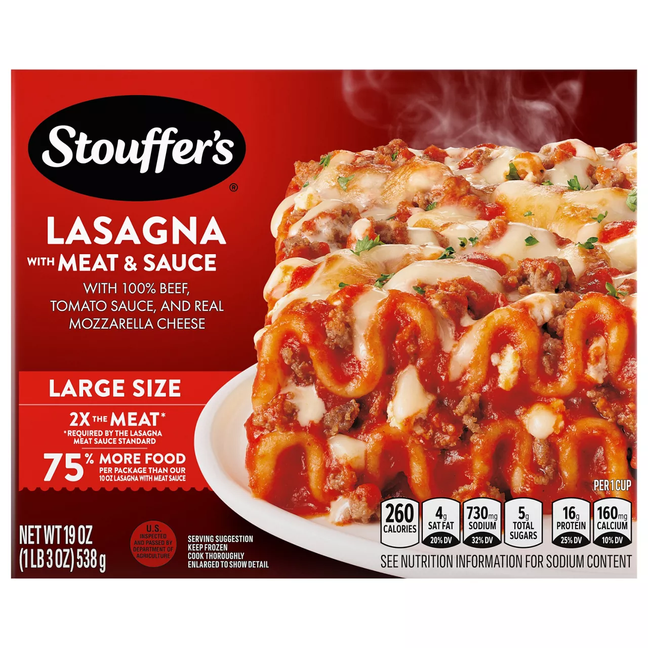 Sauce (Tomato Puree [Water, Tomato Paste], Beef Crumbles [Beef, Seasoning {Flavorings, Salt, Spices, Dextrose}, Tomato Paste, Salt, Soybean Oil], Cottage Cheese [Cultured Pasteurized Grade A Skim Milk], Beef Base [Water, Cooked Beef, Yeast Extract, Beef Extract, Beef Tallow, Natural Flavor, Salt, Sugar, Corn Starch, Lactic Acid], Sugar, Less than 2% of: Soy Sauce [Water, Soybeans, Wheat, Salt, Alcohol, Vinegar, Lactic Acid], Modified Corn Starch, Salt, Onion Powder, Garlic Powder, Spices), Cooked Enriched Pasta (Water, Enriched Pasta [Durum Wheat Semolina, Egg White, Niacin, Ferrous Sulfate, Thiamine Mononitrate, Riboflavin, Folic Acid], Soybean Oil), Part Skim Mozzarella Cheese (Pasteurized Part Skim Milk, Skim Milk, Salt, Cultures, Enzymes).