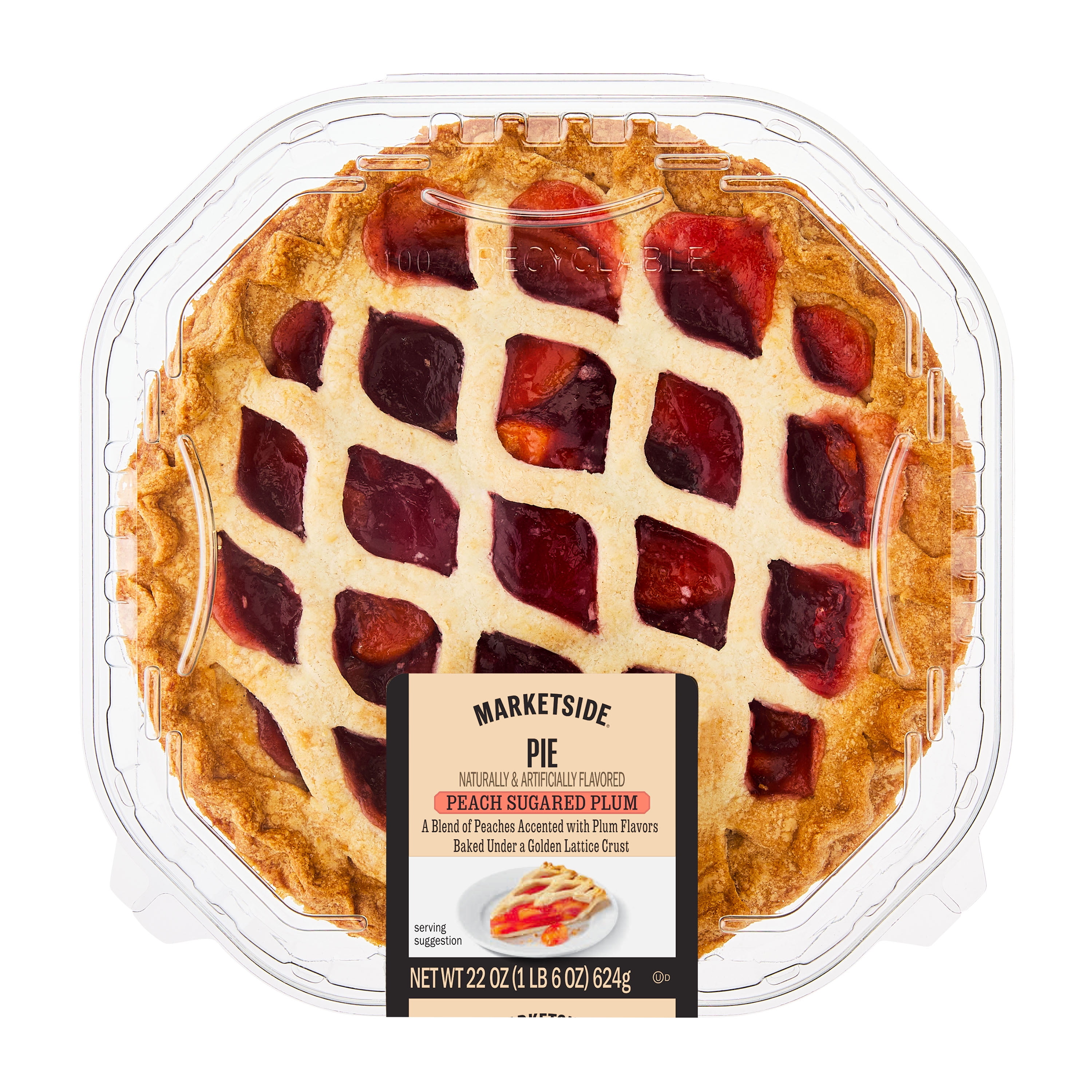 Filling: Peaches, Sugar, Water, Modified Corn Starch, Salt, Ascorbic Acid and Citric Acid (To Promote Color Retention). Crust: Enriched Wheat Flour (Wheat Flour, Niacin, Reduced Iron, Thiamine Mononitrate, Riboflavin, Folic Acid), Soybean Oil and Hydrogenated Soybean Oil, Water, Dextrose, Salt. CONTAINS: WHEAT
