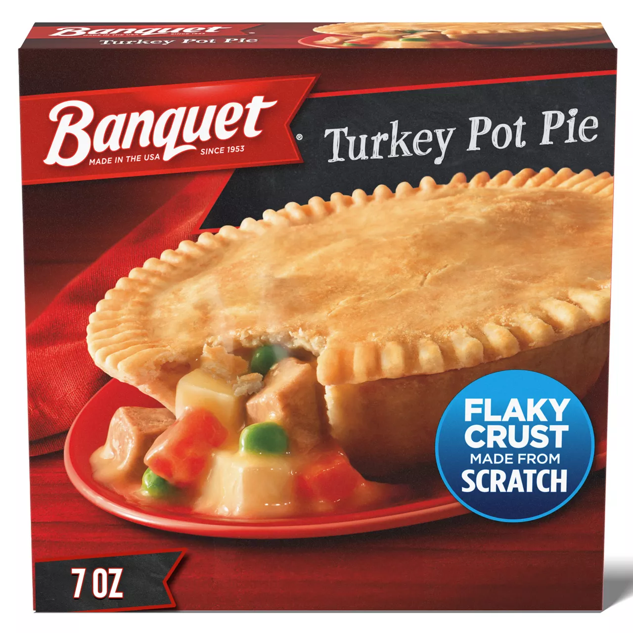 Warm up with a delicious, comforting Marie Callender's Turkey Pot Pie. Made with tender, premium turkey breast, savory vegetables, and made-from-scratch gravyall wrapped in a golden, flaky crust. With 12 g protein per serving, and no preservatives, artificial colors, or artificial flavors, this convenient meal can be microwaved or heated in the oven. Enjoy this warm, hearty, and delicious comfort food today.