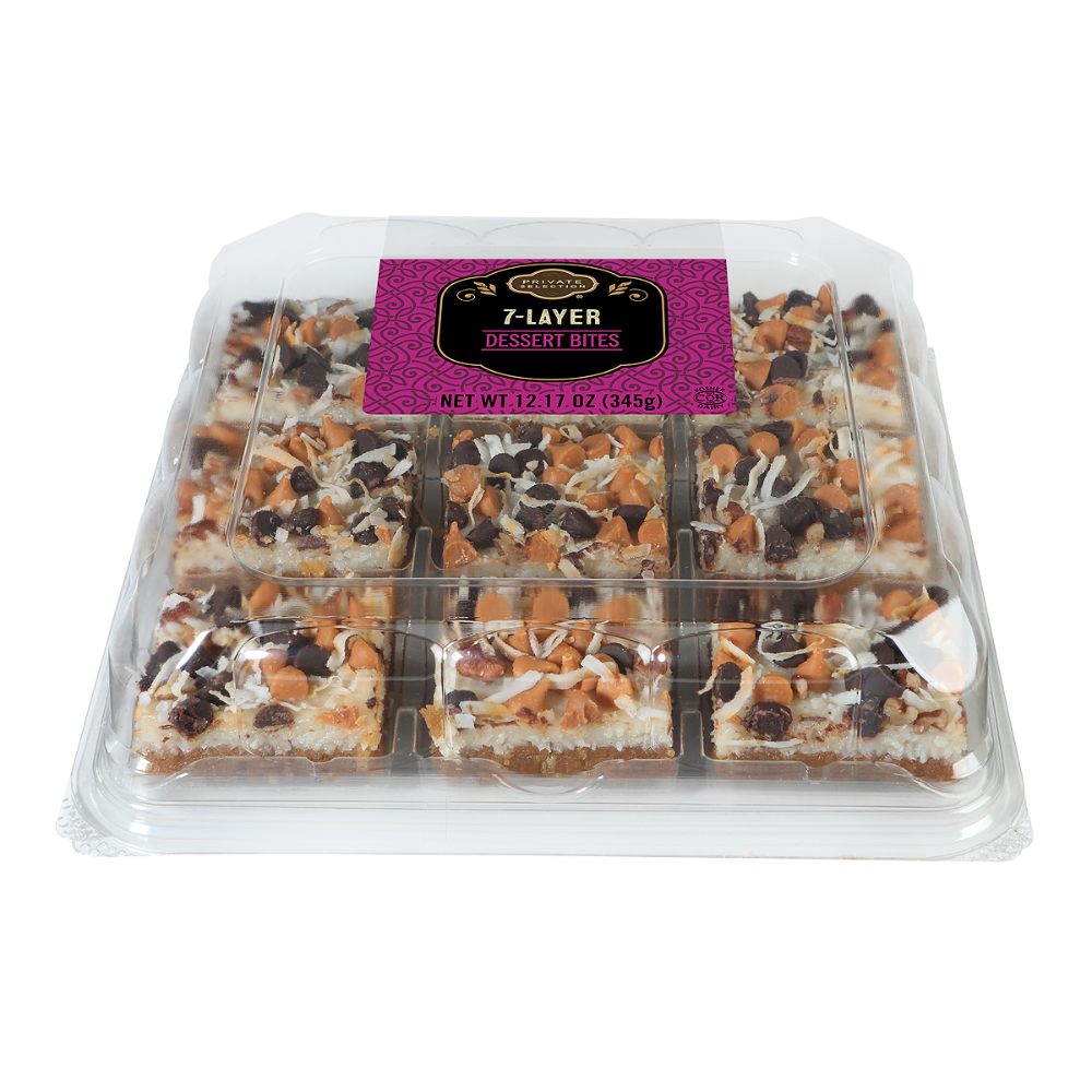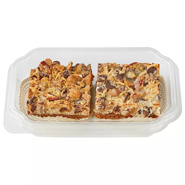 Sweetened Condensed Milk (Condensed Milk, Sugar), Semisweet Chocolate Chips (Sugar, Chocolate Liquor, Cocoa Butter, Dextrose, Soy Lecithin, Salt, Artificial Flavor), Sugar, Butter (Cream, Salt), Walnuts, Sweetened Coconut (Coconut, Sugar, Water, Propylene Glycol, Salt, Sodium Metabisulfite [Preservative]), Brown Sugar, Enriched Unbleached Wheat Flour (Flour, Niacin, Reduced Iron, Thiamine Mononitrate, Riboflavin, Folic Acid), Palm and Palm Kernel Oils, Graham Flour, Contains less than 2% of the following: Honey, Soy Lecithin, Whey, Skim Milk, Dextrose, Soy Lecithin, Salt, Artificial Flavor, Yellow 6 Lake, Yellow 5 Lake, Blue 2 Lake, Baking Soda