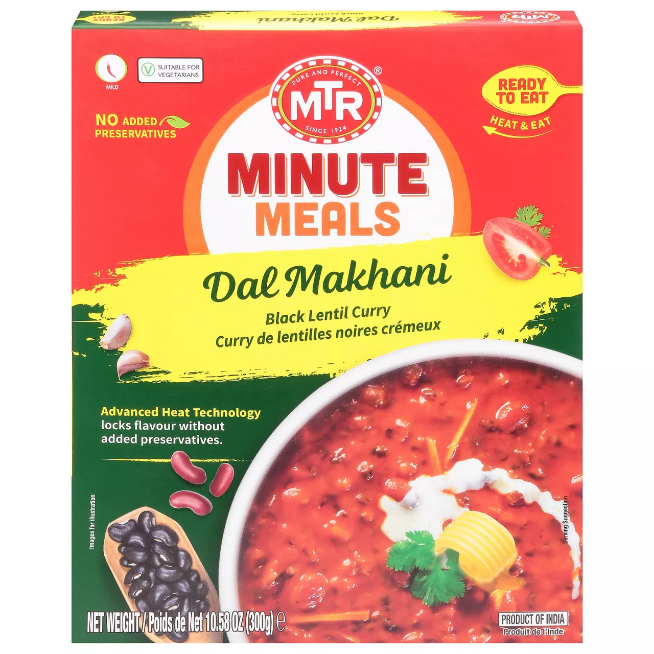 Black Lentils* (Water, Black Lentils*), Water, Tomatoes in Juice* (Fresh Vine-Ripened Tomatoes, Tomato Juice*, Calcium Chloride, Citric Acid), Onion*, Black Gram Lentils* (Water, Skinned Split Black Gram Lentils*), Coconut Cream* (extracted Coconut, Water), Tomato Paste*, Sunflower Oil*, Garlic*, Ginger*, Sea Salt, Cumin Seed*, Coriander*, Cumin*, Paprika*, Cinnamon*, Clove*, Cardamom*, Black Pepper*, Cayenne*, *Organically grown and processed