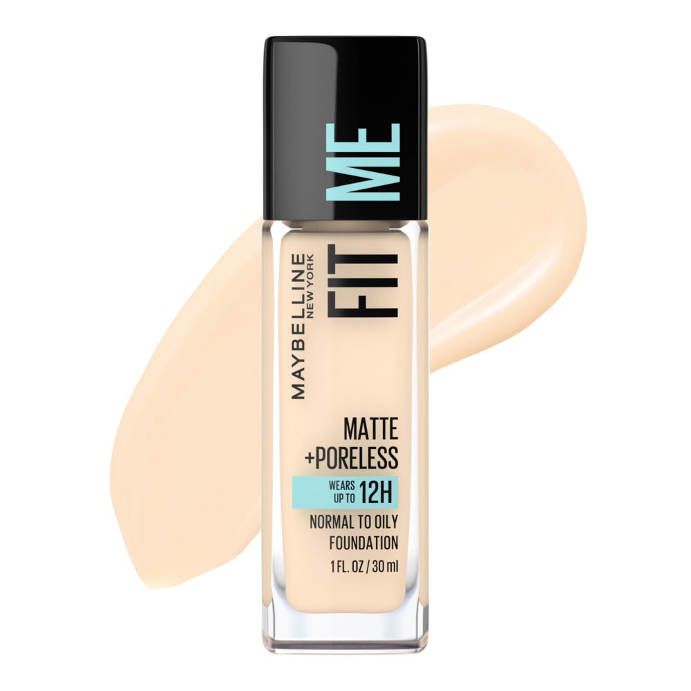 Looking for the perfect foundation fit? Maybelline New Yorkâs Fit Me Matte + Poreless Liquid Foundation is all about fitting your skin tone and texture. Ideal for normal to oily skin types, the matte foundationâs ultra-lightweight formula features flexible micro-powders to control shine and blur pores throughout the day. With its medium coverage, the liquid foundation leaves a natural finish on the skin that is never flat or cakey. The oil-free mattifying foundation is available in 40 shadesâour...