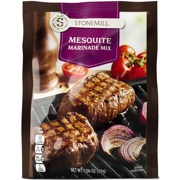 McCormick Grill Mates Gluten Free Mesquite Marinade, 1.06 oz Envelope. Fire up the grill for this bold, slightly sweet blend of garlic, onion, red pepper and natural flavor from mesquite smoke. McCormick Grill Mates Mesquite Marinade is a must-have seasoning for chicken, pork or beef. Combine 1 marinade packet with 1/4 cup water and vegetable oil with 2 pounds of meat. Marinate. Grill. Devour. This McCormick Grill Mates Mesquite Marinade is in a Plastic packet that is 1.06 ounces. Store this shelf-stable...