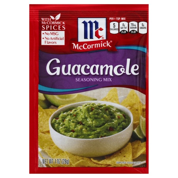 Add south-of-the-border flavor to your next party or taco night with McCormick Guacamole Seasoning Mix. Our signature blend of all-natural herbs and spices puts flavors of garlic, red bell peppers and jalapenos right at your fingertips to deliver the perfect guacamole every time. Simply mix with mashed avocados for a family-favorite dip, Mexican food topping, or add black beans and corn for a southwestern take on this classic dip.